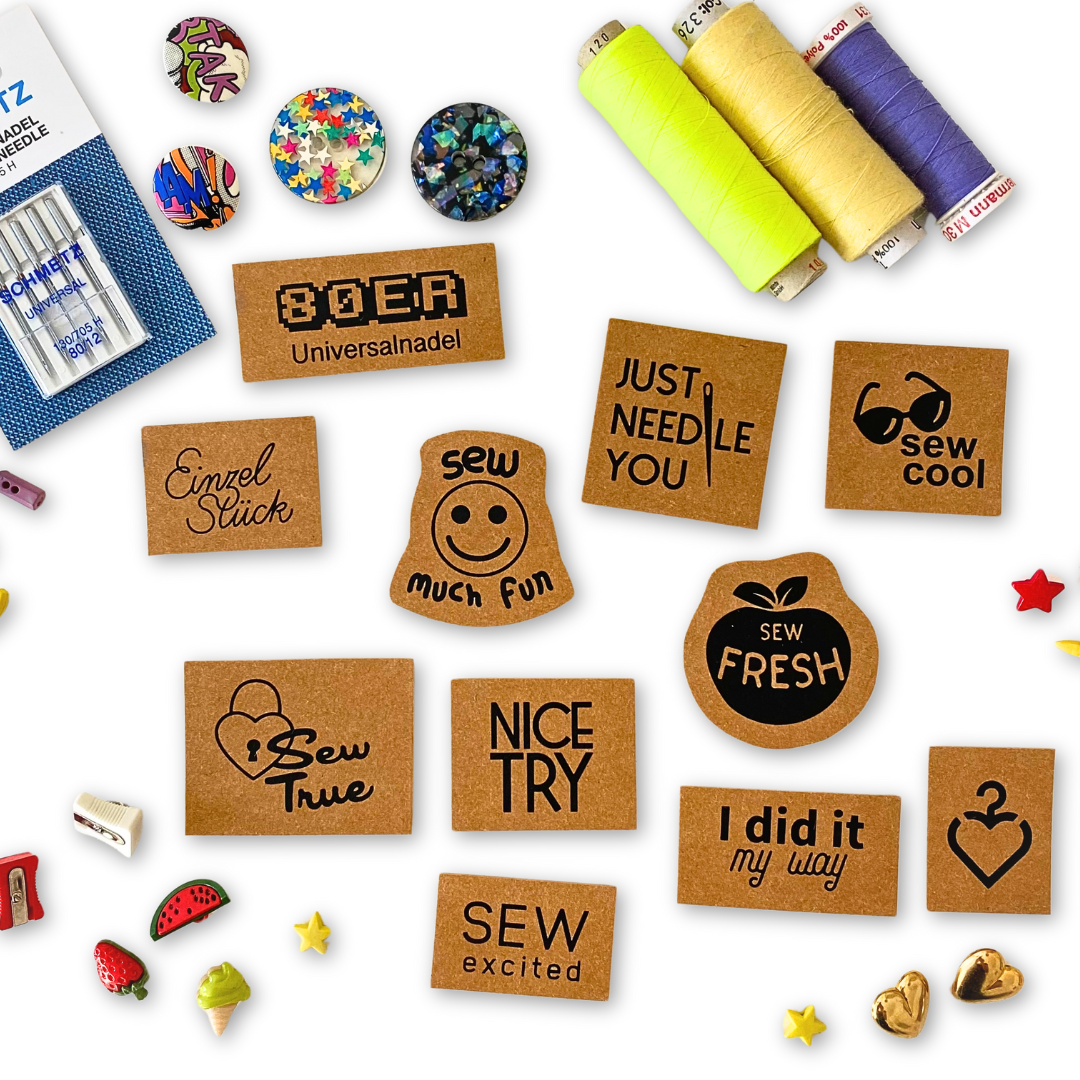 In dem „I LOVE BAGS“ Set geht‘s natürlich um Taschen! Wenn Du also gerne Taschen nähst, sind diese 10 Labels ein Must-Have für deinen DIY-Fundus!